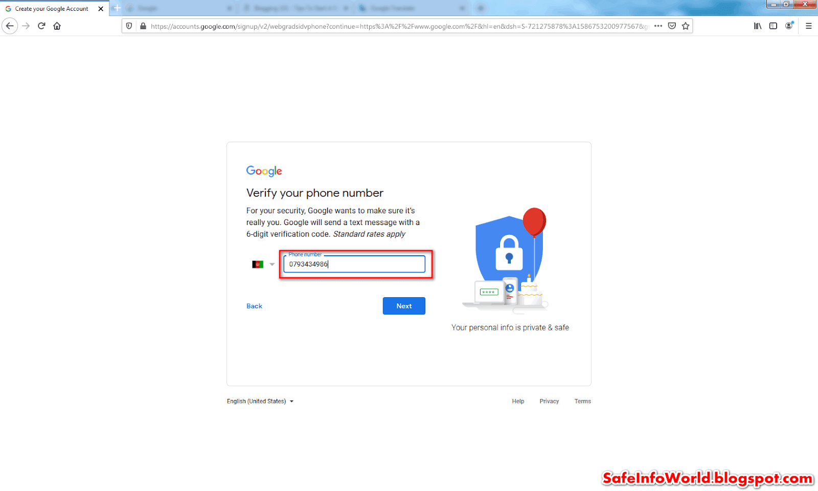 In this step, Google will automatically send 6 letters to your phone number, you need to add this 6 letters in empty space, and then click on the Verify button.